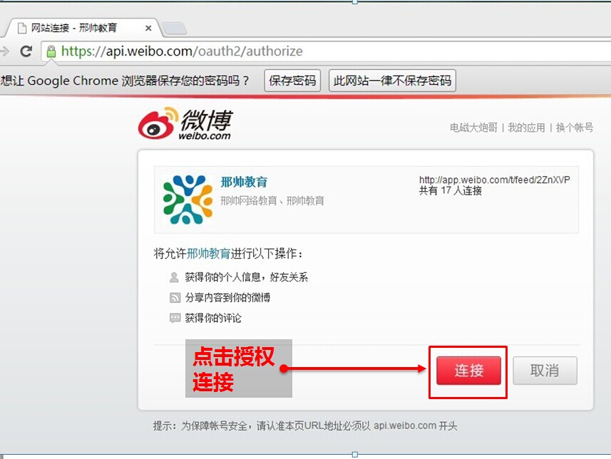 成功登录微博之后,点击授权连接