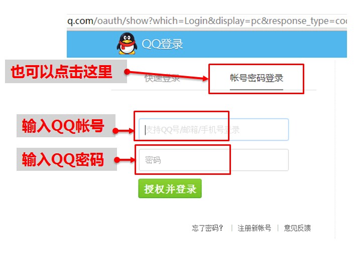 第三种情况,输入自己的QQ和密码授权登录