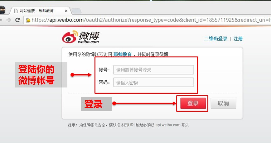 登录你的微博帐号