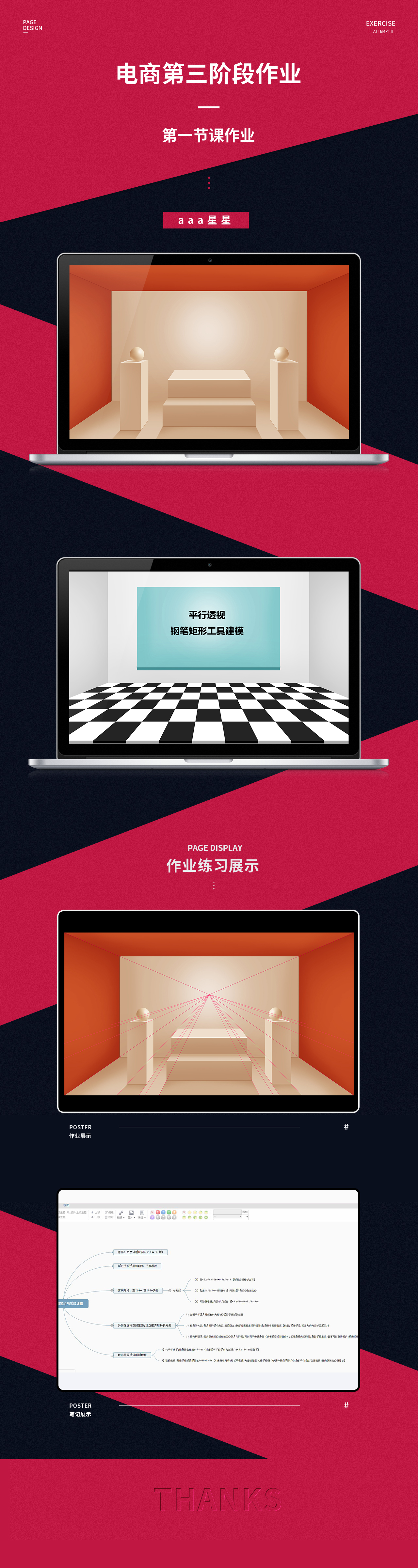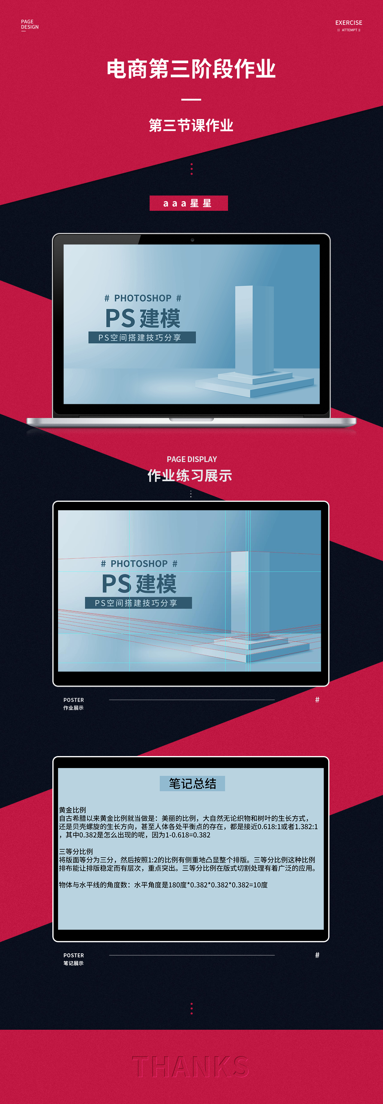 3.课成交透视钢笔矩形工具建模:两点透视特点:物体向视屏上某二点消失!注意:整体排版遵从,黄金比例和三等分比例