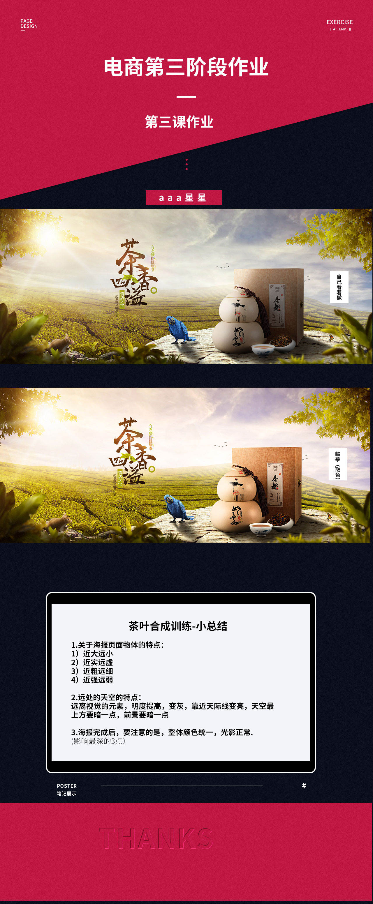经过这期,我也慢慢明白了,做设计别急,设计从模仿开始,先模仿在找思路,在创新,在原创!坚持不一定成功,成功一定需要坚持!资质平凡,所以更需努力!