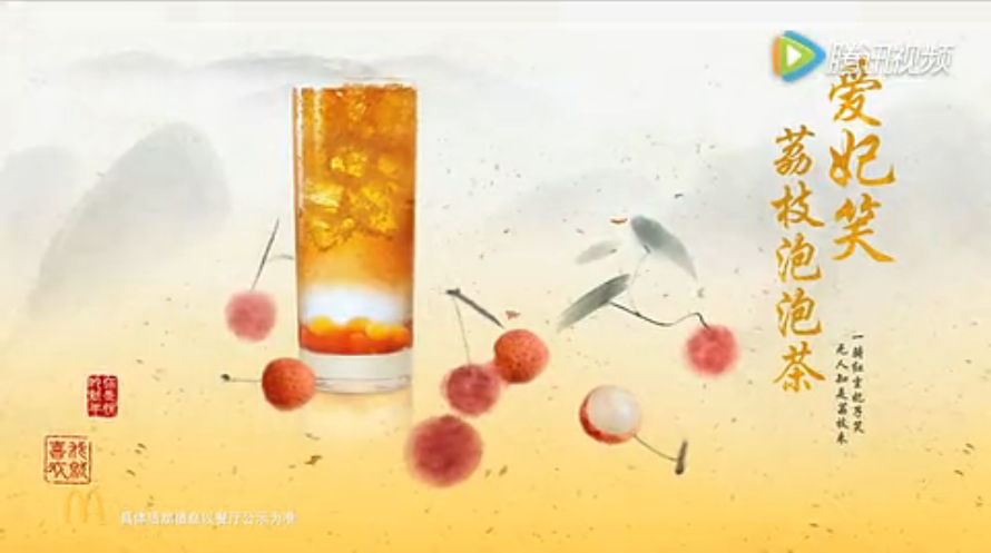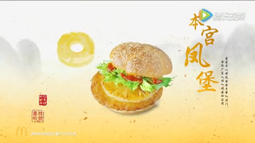 麦当劳前段时间发布新的广告,新品就采用中国的题材也中国画的表现手法。